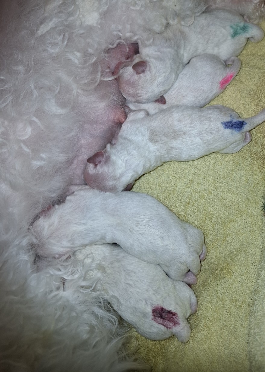 A kölykök édesanyja Kőbányai Pelyhes Daisy, aki kiváló egészségügyi eredményekkel rendelkezik.